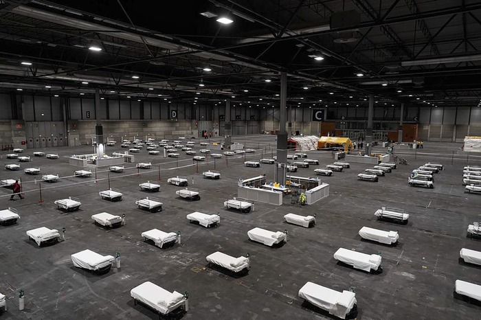 У Мадриді, для прийому хворих на коронавірус, відкрили тимчасовий госпіталь, облаштований на території величезного виставкового центру Ifema.