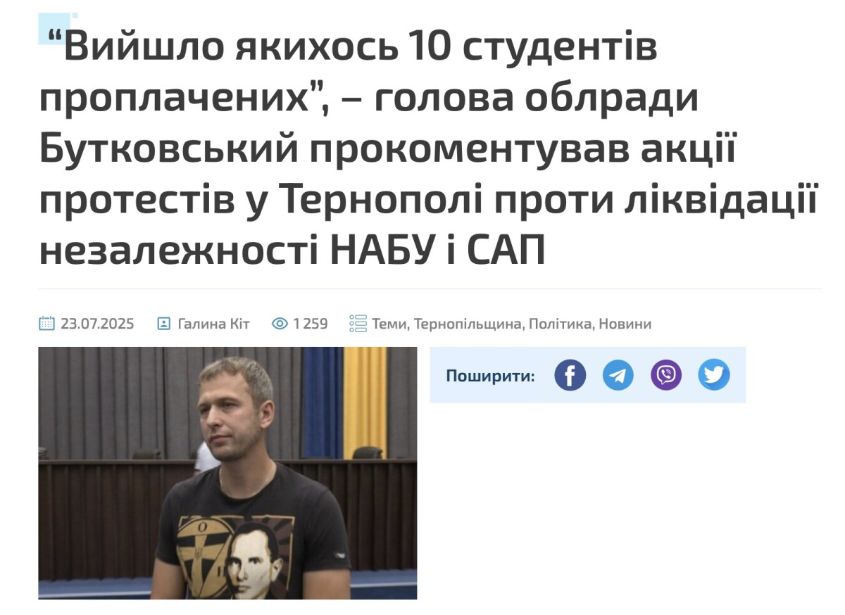 А вже у 2025-му виступив із скандальною заявою в підтримку глави держави під час атаки центральної влади на антикорупційні органи. У мережі ще довго кепкували з його слів про проплачену молодь, яка вийшла на протест, серед якої, до речі, були члени молодіжного крила «Свободи»…