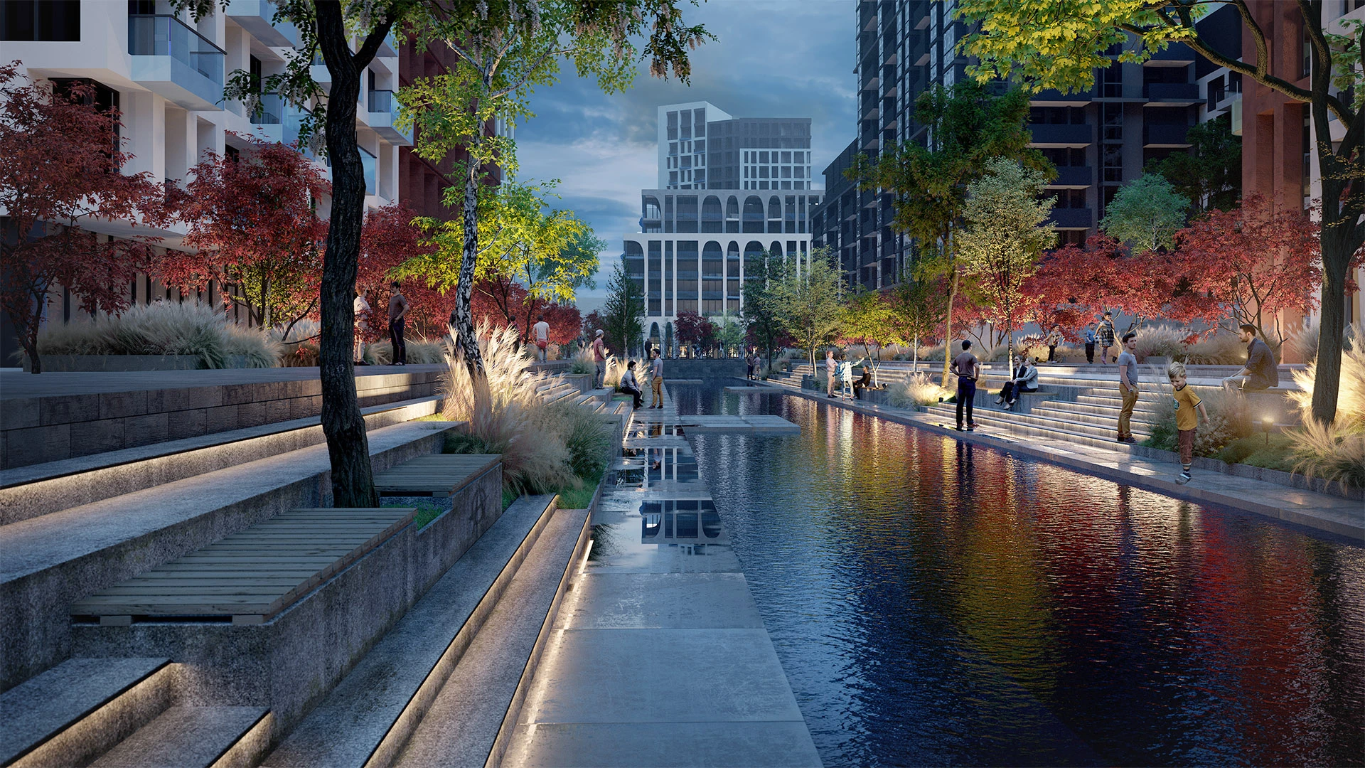 Концепцію будівництва 8 будинків висотою від 6 до 25 поверхів створило бюро“Архіматика”. Архітектори запропонували звести комплекс за концепцією “місто в місті” і відкрити з бетонного колектора русло річки Совка, притоки Либеді.