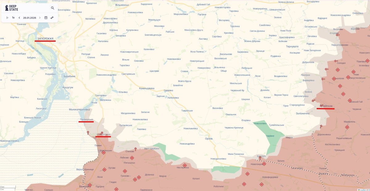 За даними аналітиків української OSINT-спільноти DeepState, східна частина міста Гуляйполе вже під контролем армії РФ, а західні райони перебувають у “сірій зоні”.