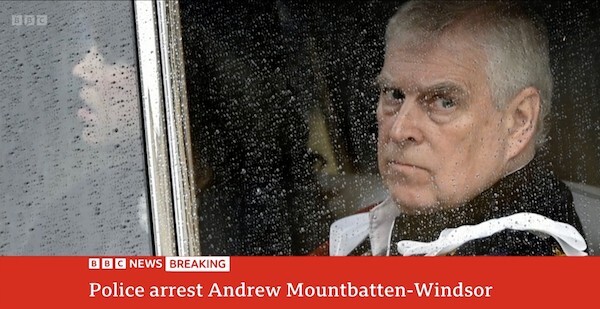 Брат короля Великої Британії Чарльза III Ендрю Маунтбеттен-Віндзор заарештований за підозрою у зловживанні службовим становищем.