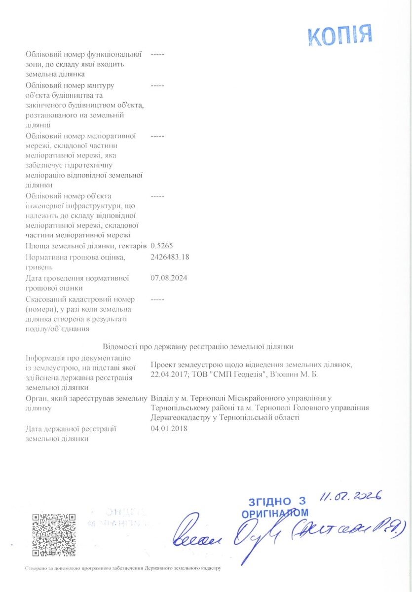 По-перше, у клопотанні відповідача зазначається, що згідно з витягом із Державного земельного кадастру про земельну ділянку HB-9989911162025 від 16.12.2025 року, наданого на запит Релігійної організації «ПАРАФІЯ ПРЕСВЯТОЇ ТРОЙЦІ М. ТЕРНОПІЛЬ УГКЦ» від 16.12.2025 Nº 3В-9995867542025, земельна ділянка к.н. 6110100000:08:017:0055, площею 0,5265 віднесена до категорії земель «Землі житлової та громадської забудови».