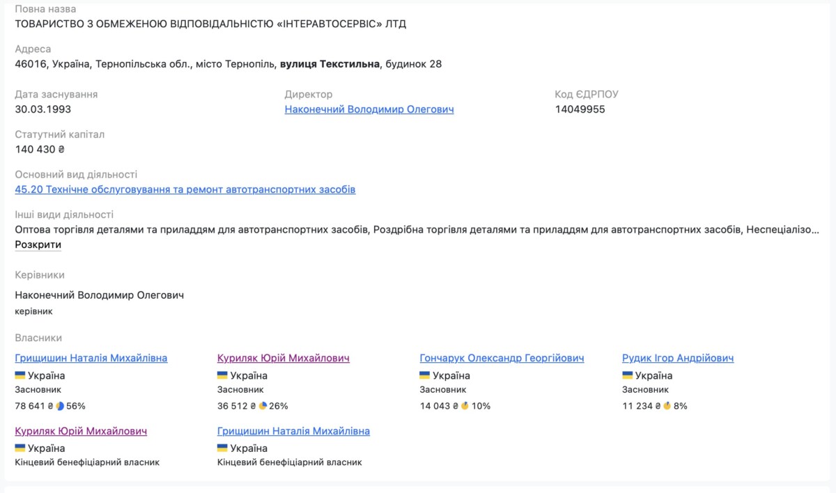 Оренда земельної ділянки під будівлею, у якій знаходився її готель “Жасмин”, тривалий час була оформлена на фірму ТОВ “ІНТЕРАВТОСЕРВІС” ЛТД родини Грищишених та Серетного, який себе у засновниках офіційно не “світив”.