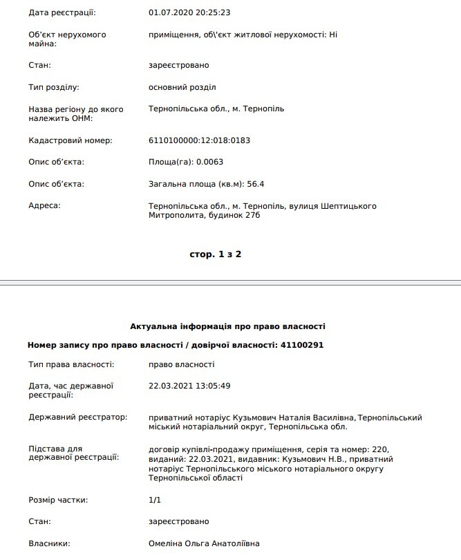 Ось як з 2016 року ФОП Ольга Омеліна з сумарним доходом у 117 тисяч гривень, хатиною у с. Великі Бережці та квартирою у Тернополі, походження якої у нас теж викликає запитання, виросла у заможну підприємицю з чисельною нерухомістю, 1,5 мільйонами сумарного доходу на рік та 135 000 доларів США заощаджень в готівці.