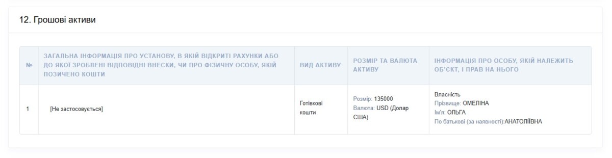 Погодьтеся, не погано. У 2019 році у пенсіонерки Ольги Омеліної нуль доларів заощаджень. А після того, як в 2020-му вона декларує 3 000 доларів США, починається шалений злет.