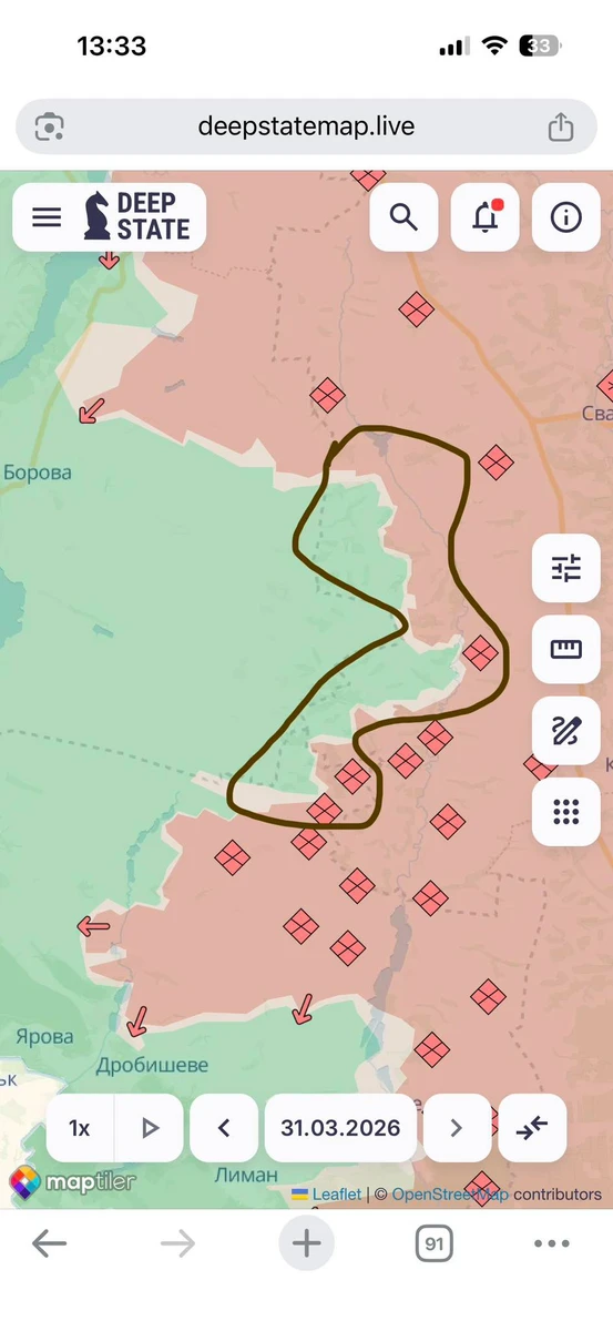 Водночас зелені зони на мапі Deep State свідчать, що частина Луганської області знаходиться під контролем Сил оборони.