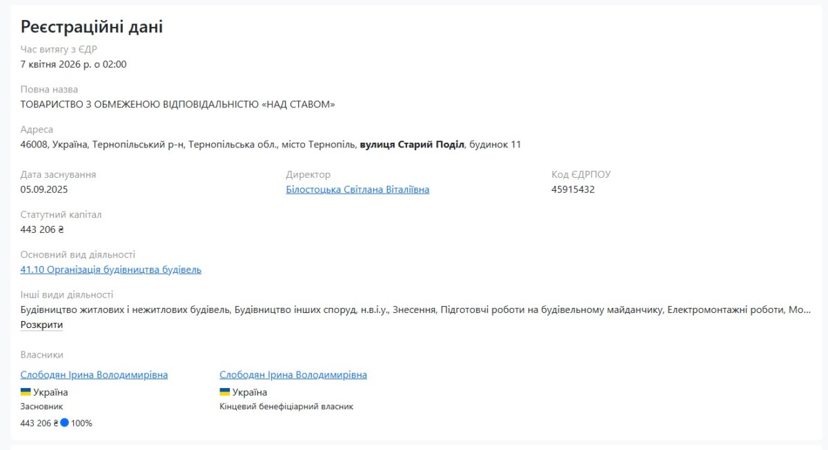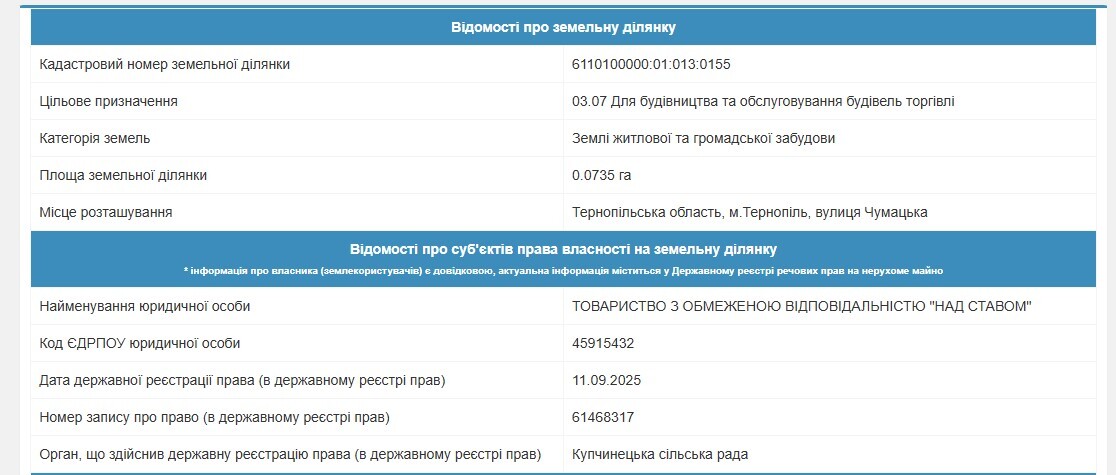 Буквально за гарячими слідами нашого матеріалу щодо нової власниці ТОВ “Капітал-інвестування”, а саме 11 вересня 2025 року, власність на земельну ділянку під колишньою парковкою біля готелю “Галичина” перейшла до ТОВ “Над ставом”, створеним за кілька днів до оформлення документів.