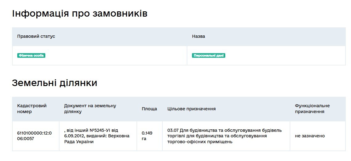 Після переоформлення ділянки на ТОВ “Капітал-інвестування” змінилося і її цільове призначення на “будівництво та обслуговування будівель торгівлі”.