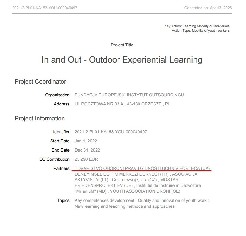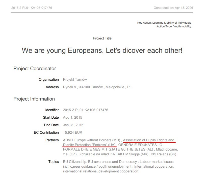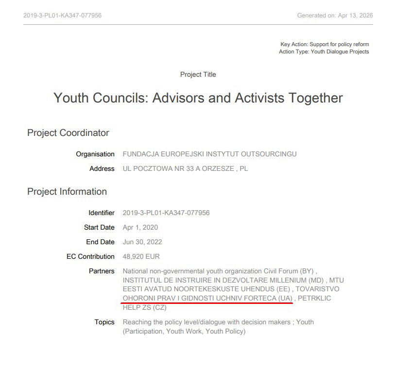 ГО “Фортеця” засновувалася, як грантова організація, а тому часто виступала партнером у міжнародних проєктах, які фінансувалися коштом Євросоюзу.