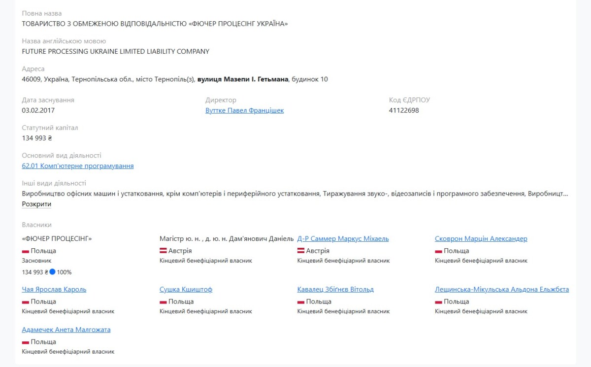 Future Processing Ukraine в Україні зареєстроване як ТОВ “ФЮЧЕР ПРОЦЕСІНГ УКРАЇНА”, а це його досить великі доходи з порівняно незначним прибутком: