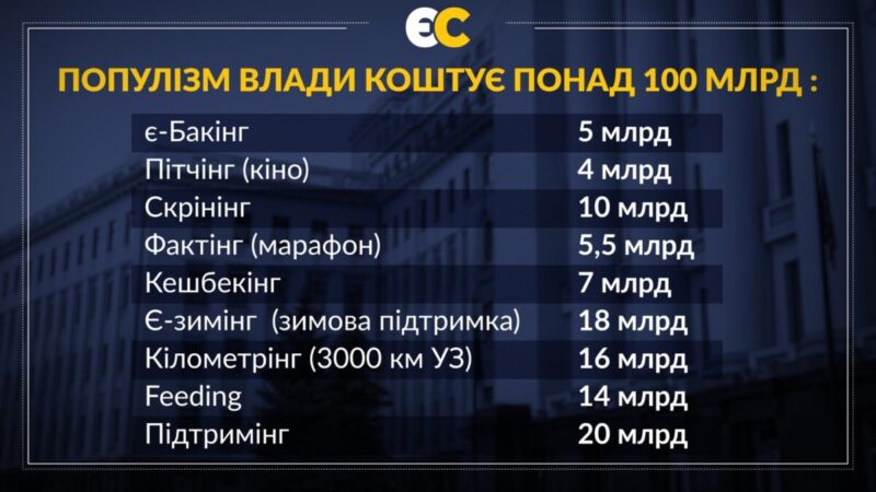 “Влада використовувала ці кошти на абсолютний популізм. На Є-бакінг – 5 млрд грн, кешбекінг – 7 млрд грн, “зимову підтримку” – 18 млрд грн, “підтримінг” – ще 20 млрд грн. Якщо ви просумуєте, вийдете на цифру 100 млрд грн”, – зауважив Порошенко.