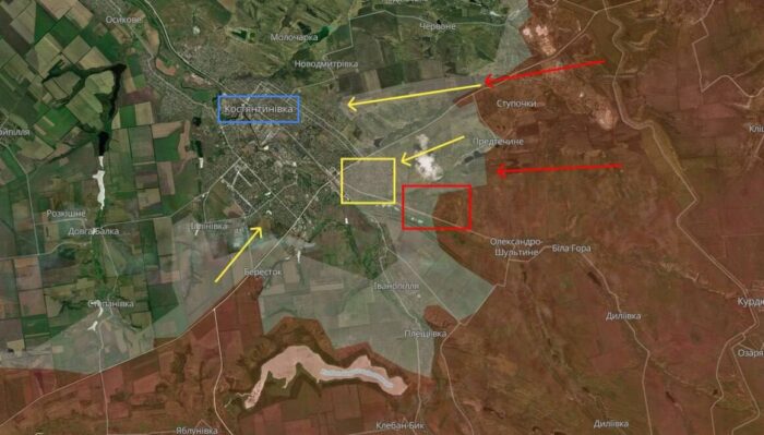 Також у DeepState повідомляють про нестачу людей на цьому відтинку, які б могли стримувати натиск росіян. Зокрема, найбільший ресурс для знищення та блокування інфільтрацій є дрони, якими українські бійці вишукують росіян. Вони безперестанно намагаються стримувати піхоту противника, але її “безкінечна” кількість потроху проламує оборону Костянтинівки. Паралельно з цим війська РФ рівняють населений пункт із землею, що ускладнює його утримання.
