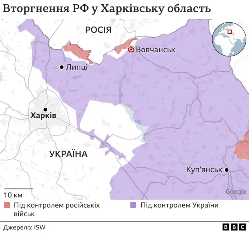 З самого ранку 10 травня війська РФ з Бєлгородської області почали наступати за двома напрямками на Харківщину. Українські війська відступили вглиб території на декілька кілометрів. Росіянам вдалося окупувати за кілька днів десяток прикордонних сіл.