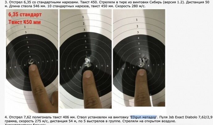 Пост має заголовок “Творець псп-гвинтівок “Едган” Едуард Гафаров – про стволи “Альфа пресижен”. Там є коментар Гафарова на російському форумі, де він пояснює, чому використовує стволи Alfa Precision замість іноземних.