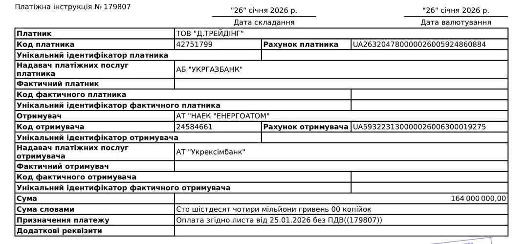 Щобільше, 26 січня “Енергоатом” отримав від компанії Ахметова 164 млн грн як добровільну компенсацію.